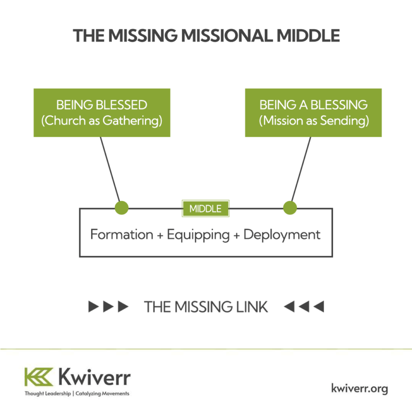 The Missing Missional Middle therefore refers to the critical but underdeveloped space between the gathered life of the church and the sent life of mission, where believers are intentionally formed, equipped, and deployed to translate spiritual vitality into missional engagement. It is the absent or weak connective ecosystem that should bridge being blessed (through worship, teaching, fellowship, and revival) with being a blessing (through participation in God’s redemptive mission in the world).
