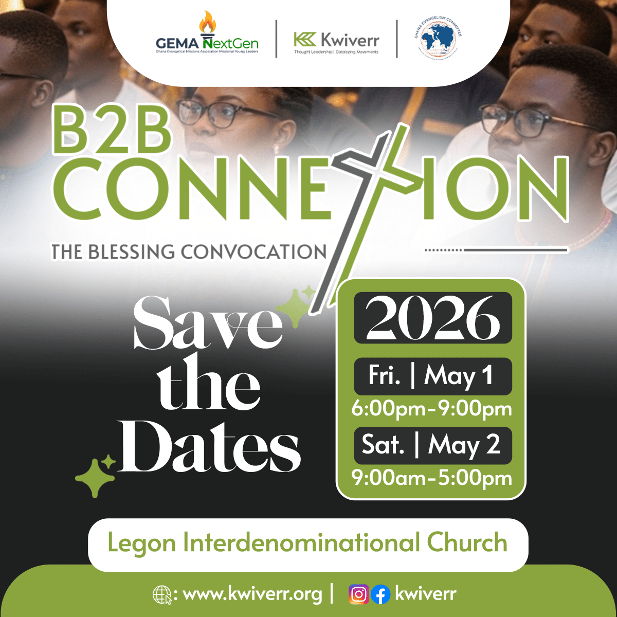 The B2B ConneXion/The Blessing Convocation has been dreamt about—in all sorts of iterations—for eons. It’s now here as a Kwiverr collaboration of the entire Body of Christ in Ghana through the Ghana Evangelical Missions Association (GEMA)—and particularly its Missional Young Leaders Department known as GEMA NextGen—and the Ghana Evangelism Committee (GEC).